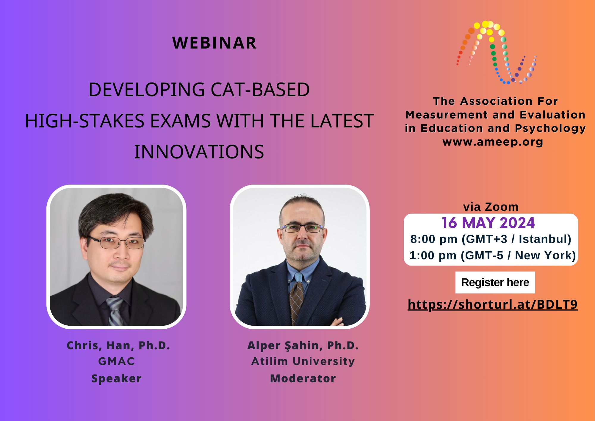 New Applications of IRT-Based Computerized Adaptive Testing webinarı çevrimiçi ortamda 19.07.2022 tarihinde saat 20:30’da gerçekleştirilecektir.